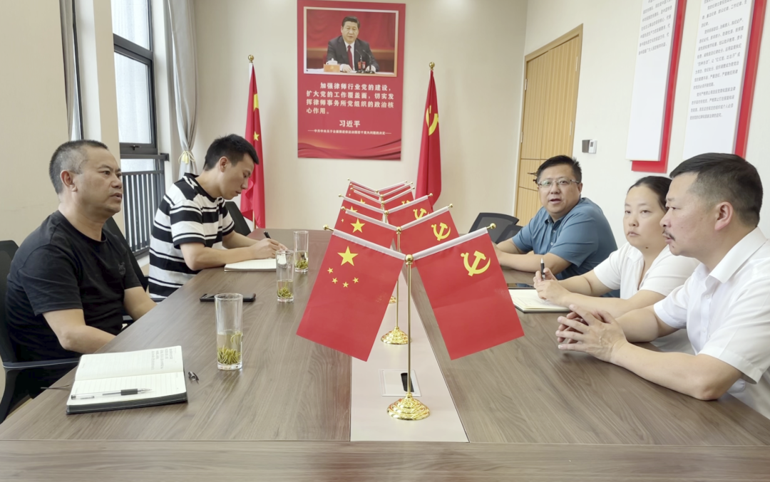 在贵州新长征律师事务所,遵义市质量品牌建设促进会副秘书长王艾、秘书处办公室李毅、谢宗政与我所主任牟泰勇、党支部书记令狐晓雪、副主任廖茂林就律所品牌建设、发展等开展了交流座谈。