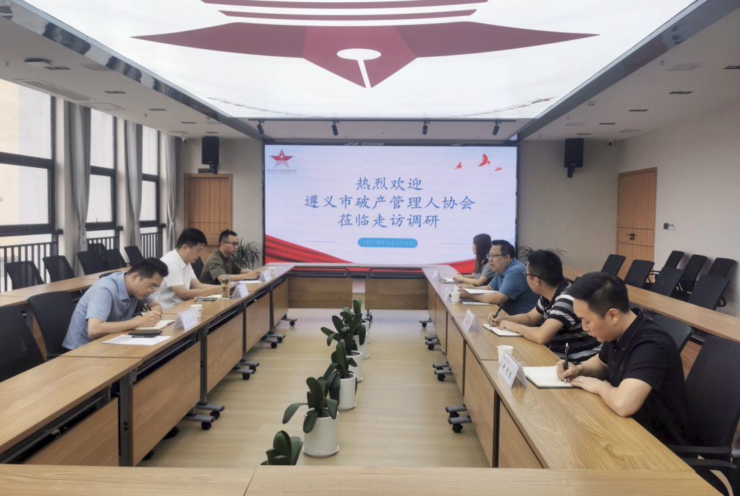 遵义市破产管理人协会副会长刘富刚就遵义市破产管理人协会(以下简称协会)做了简单介绍,并将本次走访调研的目的和主要内容进行了详细说明。他表明,虽然自己亦是新长征律所的一员,但本次走访调研身份不同,系代表协会来充分了解会员单位情况,梳理会员需求,为会员提供高质量服务夯实基础,同时加强沟通交流,共同探讨破产业务的发展等。