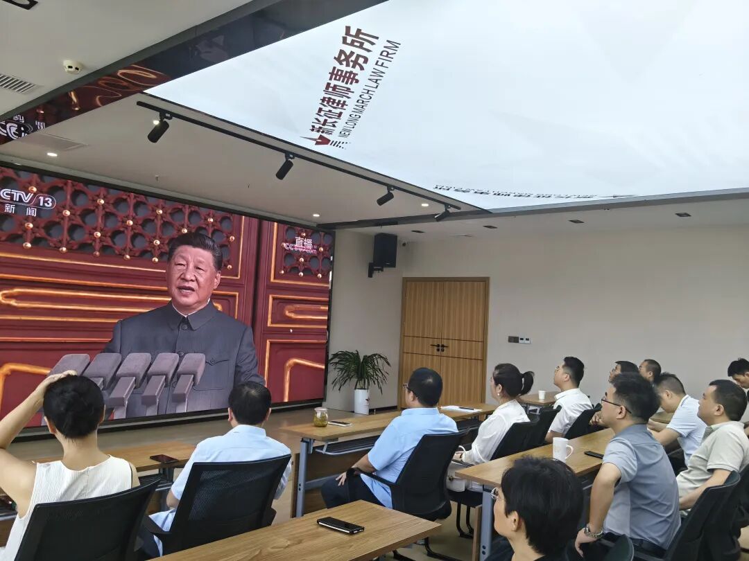 旌旗猎猎,铁流滚滚。2025年9月3日上午,纪念中国人民抗日战争暨世界反法西斯战争胜利80周年阅兵仪式在首都北京隆重举行。贵州新长征律师事务所党支部及律所共同组织全所人员观看这一庄严盛典直播。大屏幕前,目光炯炯,神情肃穆;国歌声起,情绪澎湃,热血激荡。共同见证祖国强盛的雄姿,感受那份属于民族的自豪与荣光。